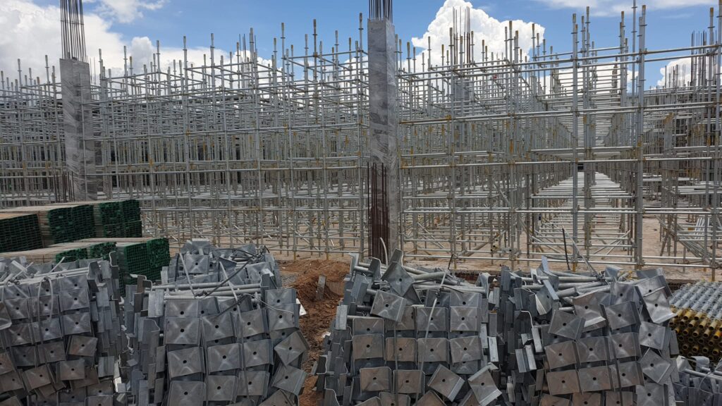 - Kiểm tra các thành phần: Trước khi bắt đầu lắp đặt, kiểm tra tất cả các thành phần của giàn giáo, bao gồm thanh chống đứng, thanh giằng ngang, thanh khằng chéo, mâm đĩa, kích chân, kích đầu U và các phụ kiện khác.